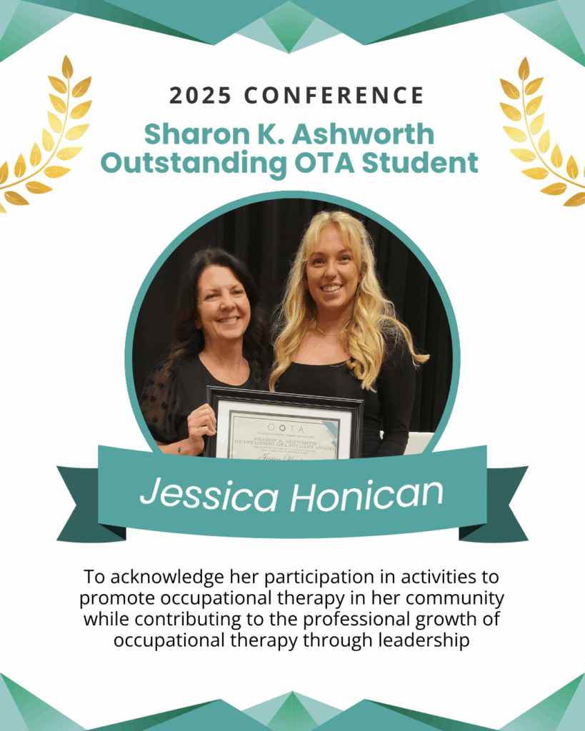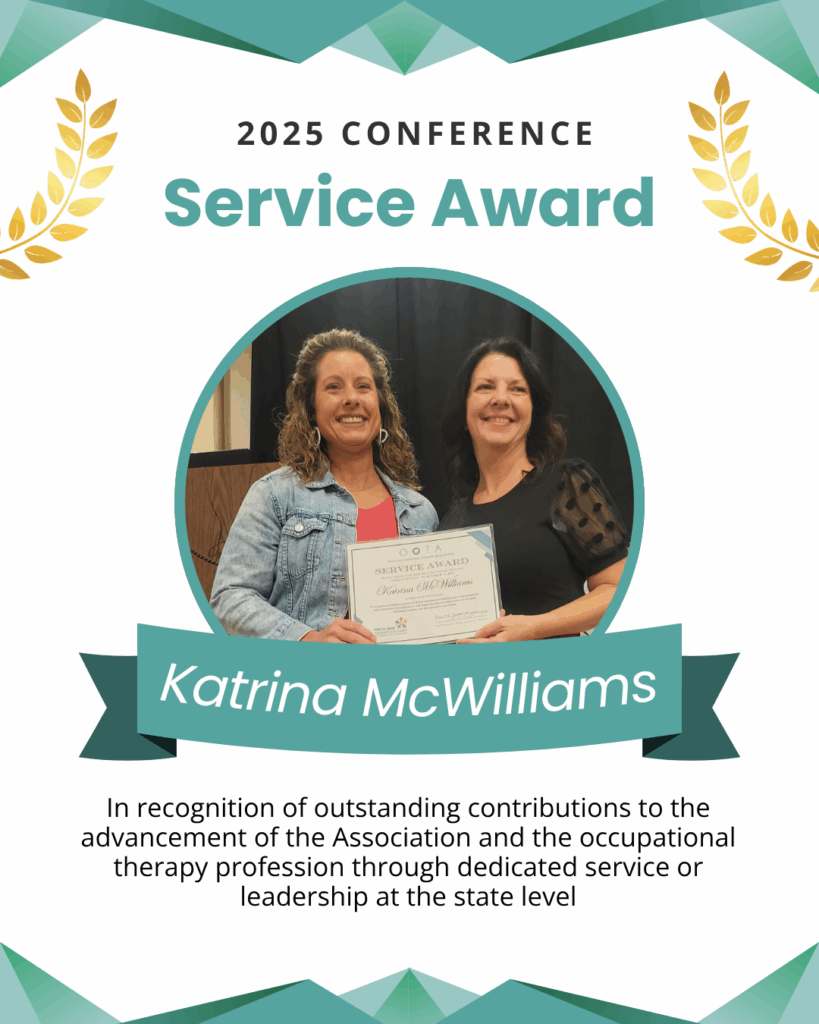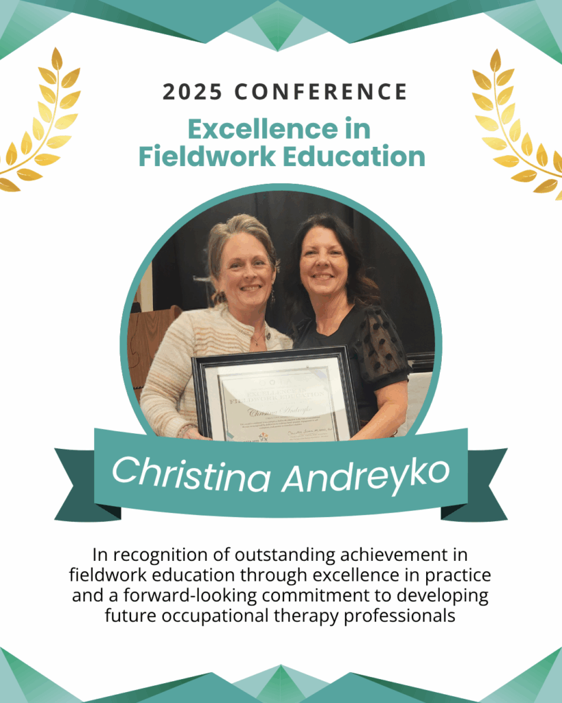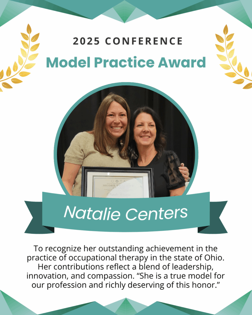 Award Description: To recognize members for outstanding achievement in the practice of occupational therapy in the state of Ohio.