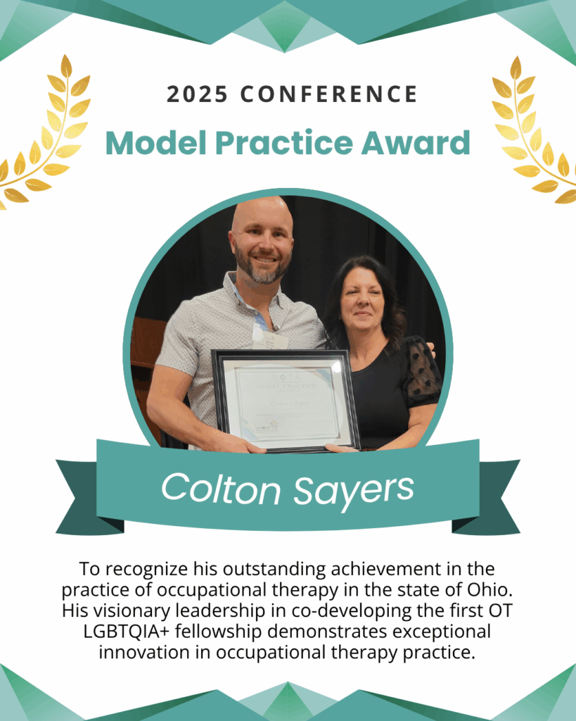 “…Colton’s visionary leadership in co-developing this fellowship demonstrates exceptional innovation in occupational therapy practice, establishing new standards for inclusive care and positioning Ohio as a national leader in progressive occupational therapy education and practice.”