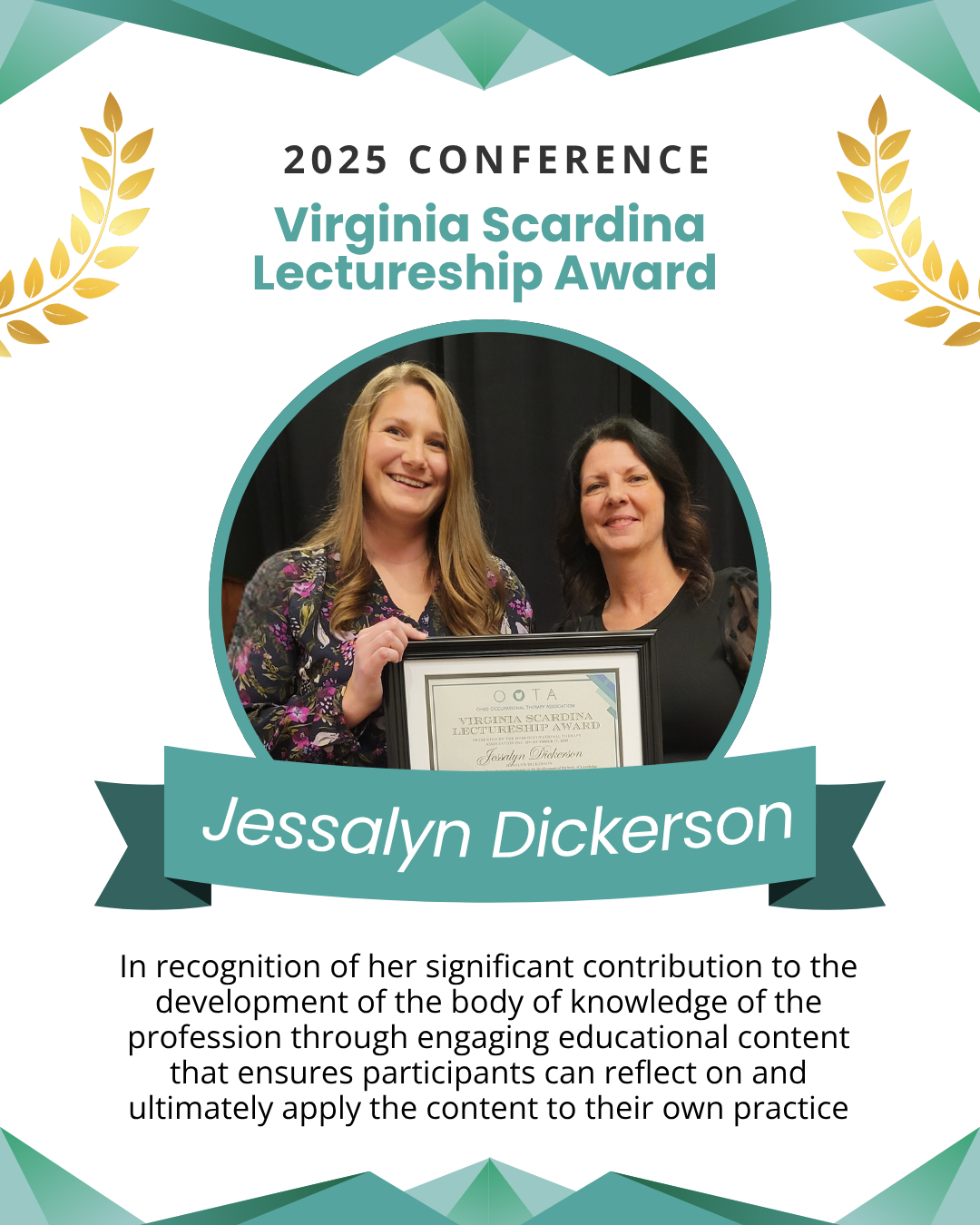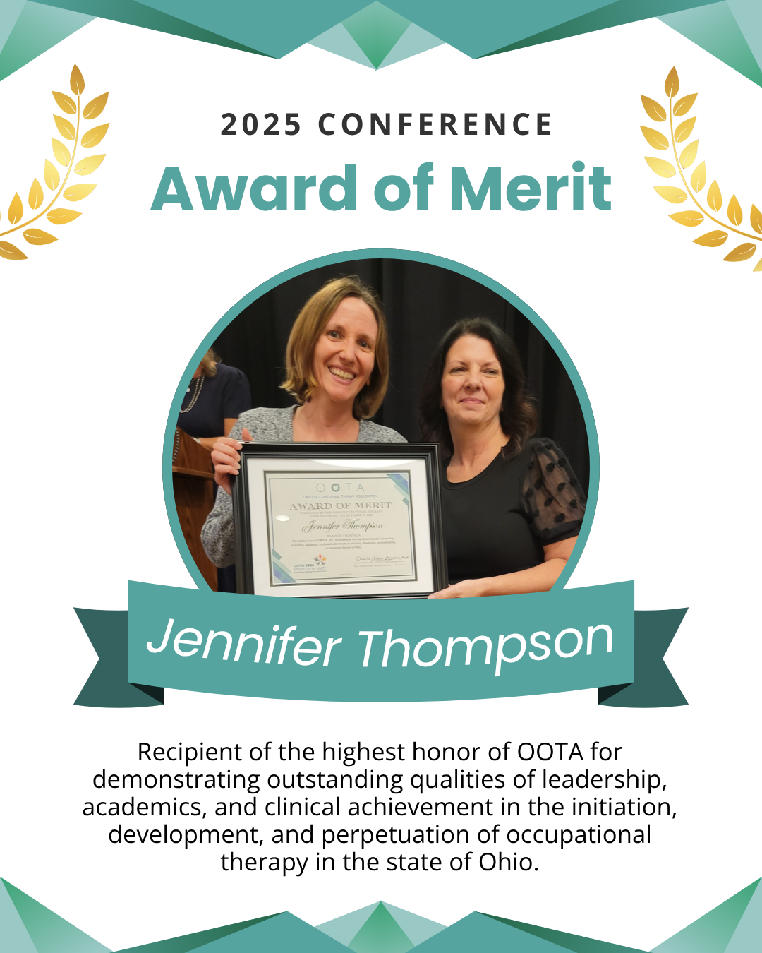 Nomination Description: “Jennie has been an integral part of OOTA since 2006, demonstrating unwavering dedication to both the profession and the organization…”