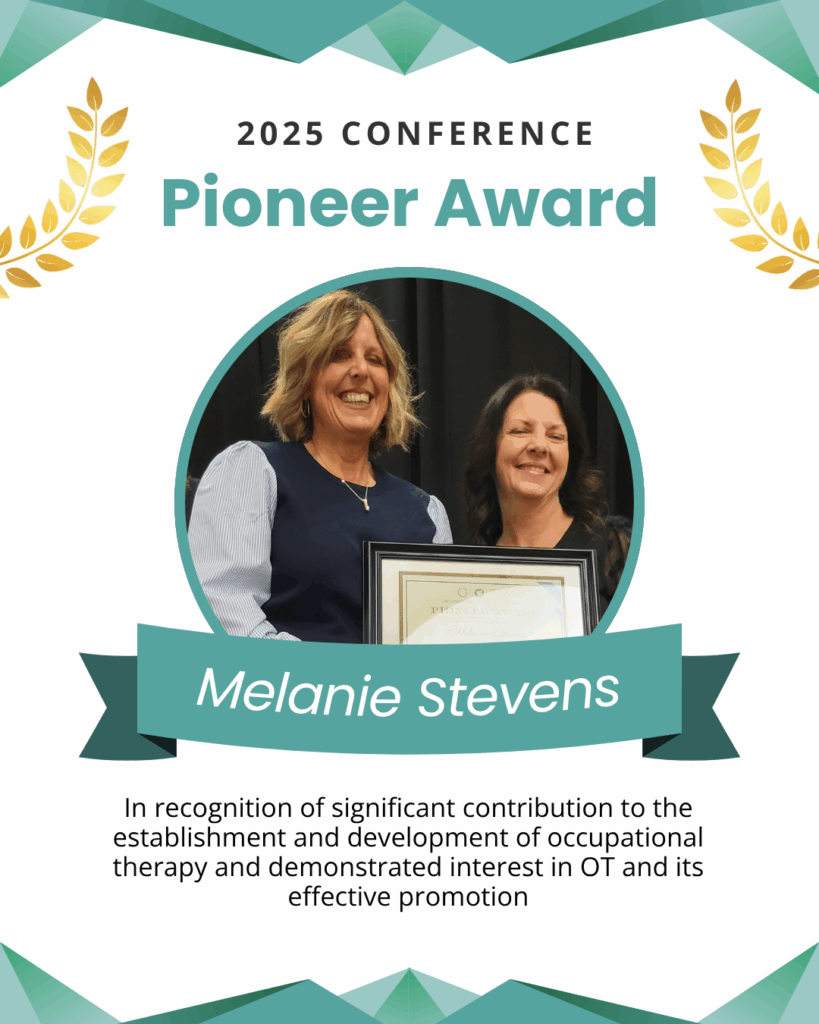 “Melanie Stevens, MS/CCC-SLP, BCS-S, has been a transformative force in the professional development of occupational therapy (OT) practice in Ohio through her leadership in dysphagia management, interdisciplinary collaboration, and clinical innovation. Her impact has been especially profound in integrating occupational therapy perspectives into hospital-wide and state-level initiatives that advance best practices and elevate the visibility of OT practitioners (OTPs)…”