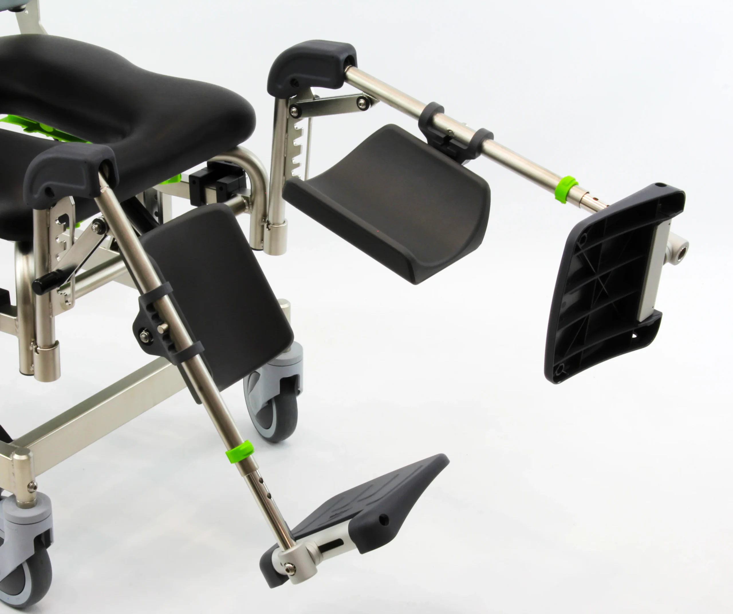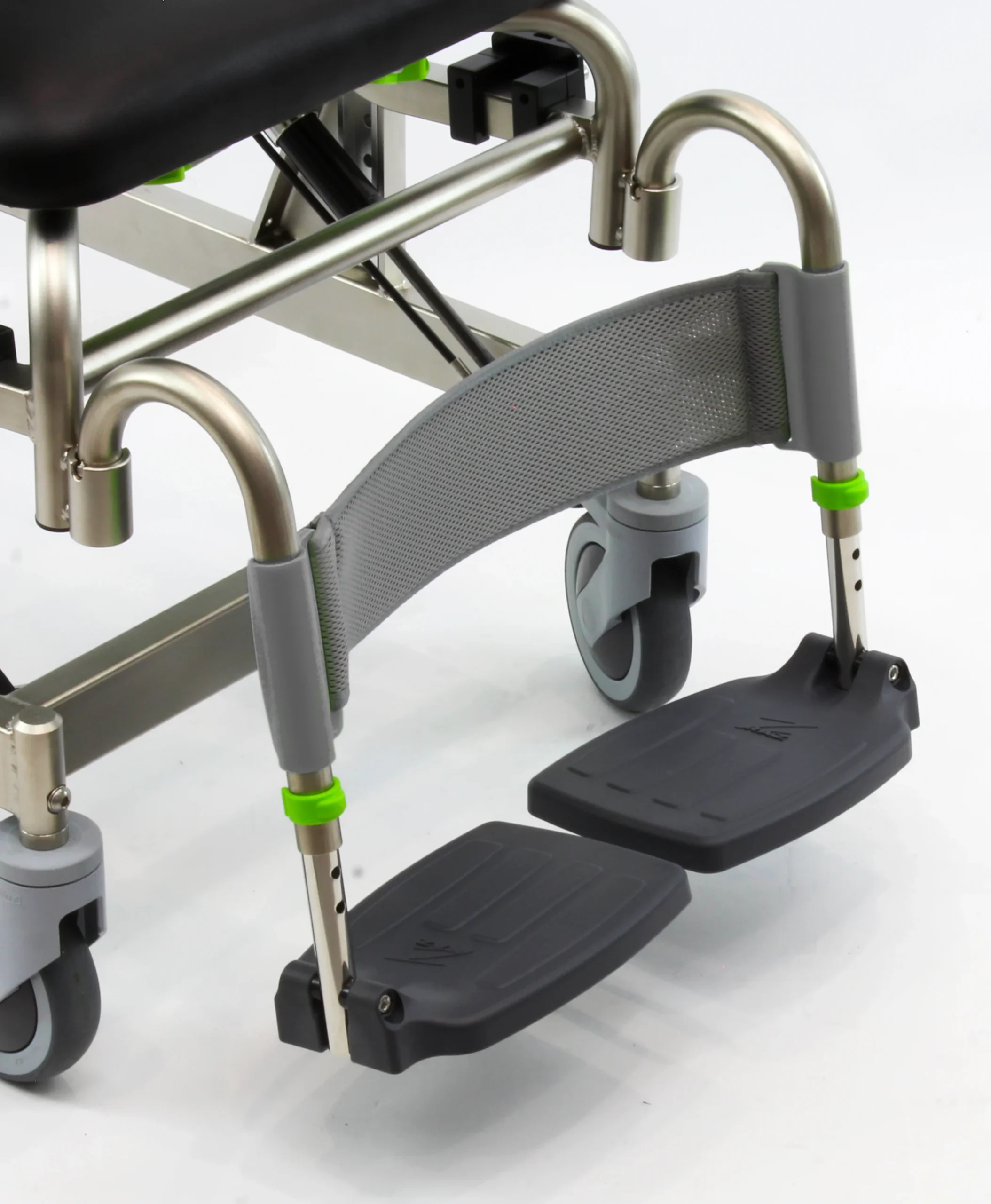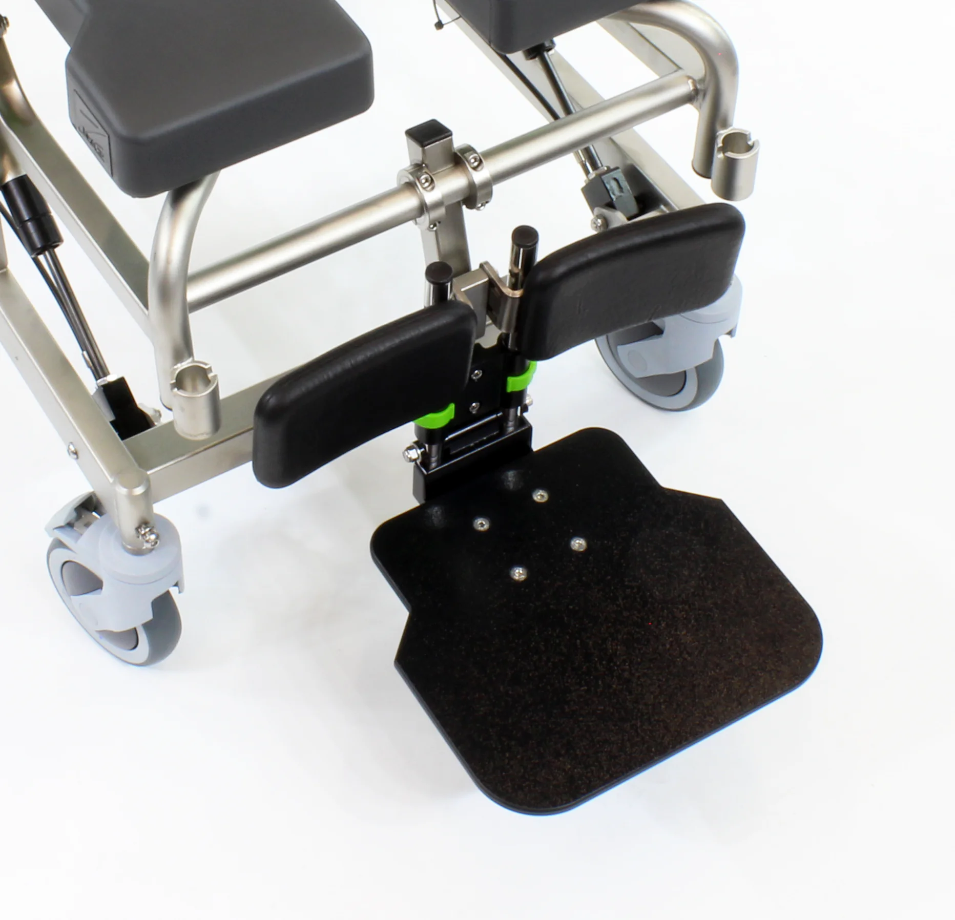 - Foot positioning can be impaired for many reasons, from spasticity or hypotonicity to edema or contractures. Positioning of the feet can lead to improved overall stability to engage in a bathing routine and can be supported with elevating leg rests, calf straps, heel loops with adjustable angled footrests, or a rigid footplate.