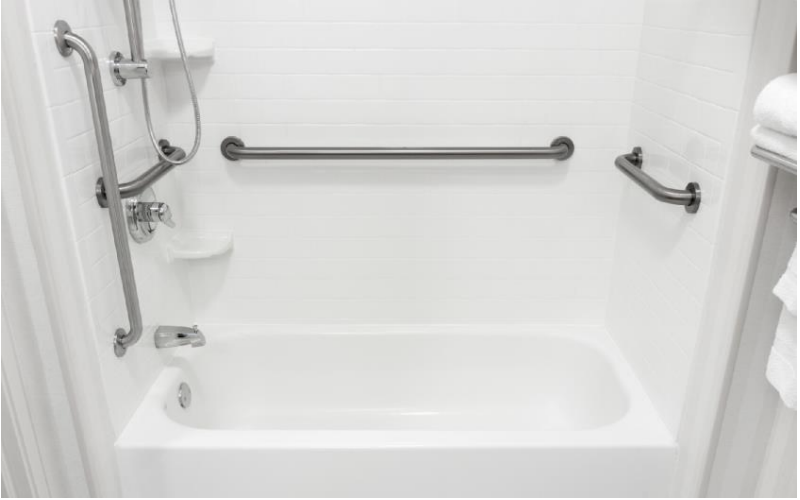 - Grab Bars: A person that requires the use of an ambulatory device, typically utilizes the arms of a chair to support standing and therefore will likely benefit from grab bars to support standing in this alternative location. Those with lower extremity weakness/mobility limitations such as foot drop may benefit from grab bars to support balance and stability when entering and exiting the shower/tub as well.