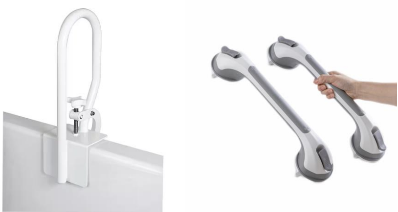 assist with entering/exiting. - There are also adjustable/removable options for grab bars such as a tub bar or suction cup grab bars that can be considered. These may be a good option for those who are unable to make permanent modifications to their showers; however, it is important to note that these non-permanent options have a greater chance of losing adherence over time and therefore reducing safety.