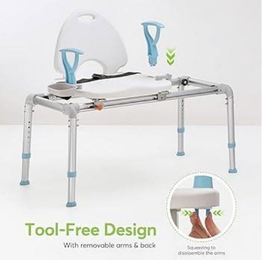 - A person that requires the use of a transfer board or completes a lateral transfer will likely benefit from options that allow for a portion of the equipment to hang over the edge of tub, have a sliding portion, or are able to be situated immediately at the edge of the shower space to reduce the distance to transfer and optimize safety. In order to remove as many obstacles as possible, it is important to consider if the equipment being utilized has the ability for an armrest to be removed for easier and safer access to complete the transfer, or a swivel style seat.