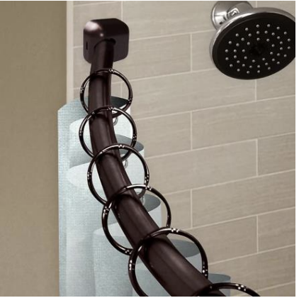 - There are various styles of curtain rods: curved and straight. A curved curtain rod offers a bit of extra space as the curtain itself sits a bit further from the edge of the tub or shower offering a little more maneuverability, which can be a good option when a caregiver is involved.